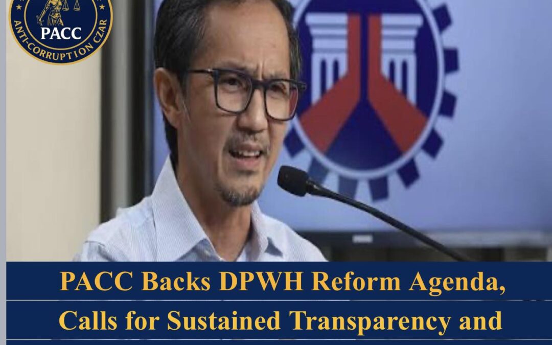 The Philippine Anti-Corruption Czar (PACC), through its Chairman Dr. Louie F. Ceniza, PhD, has expressed strong support for the reform initiatives currently being implemented by the Department of Public Works and Highways (DPWH), while reaffirming its firm commitment to continue independent monitoring of government infrastructure projects.