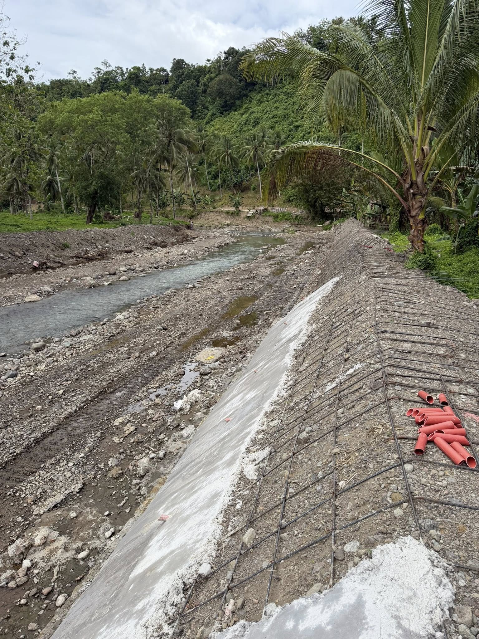 soil was dumped along the riverbank and merely covered with a thin layer of cement, creating the illusion of a concrete revetment.